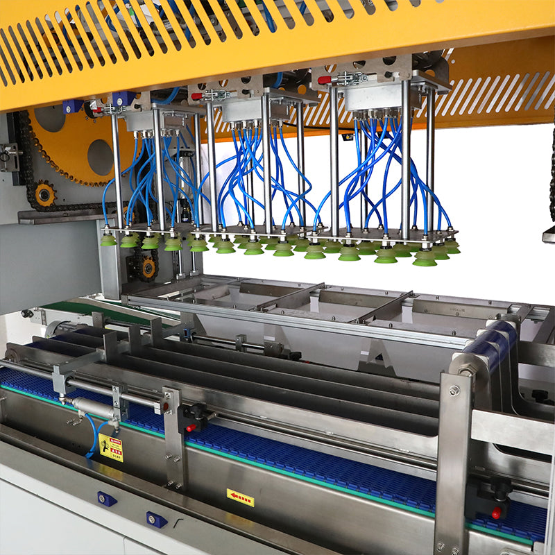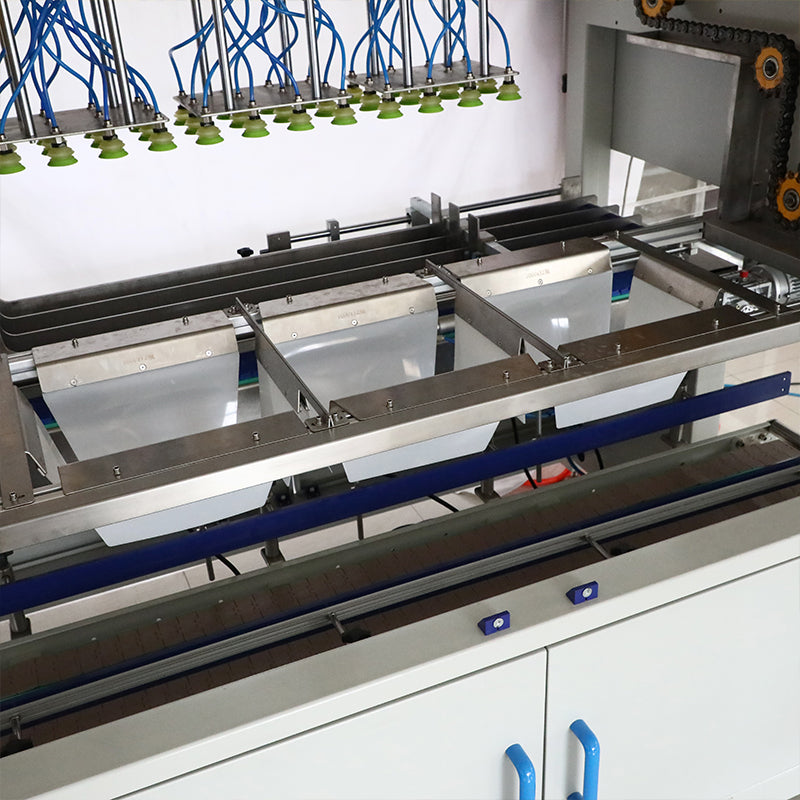 Automatic Cartoning Machine is in the rear of the packaging line. The whole bottle is loaded into the carton by the suction cup, which makes the operator easy to pack and improve the efficiency.